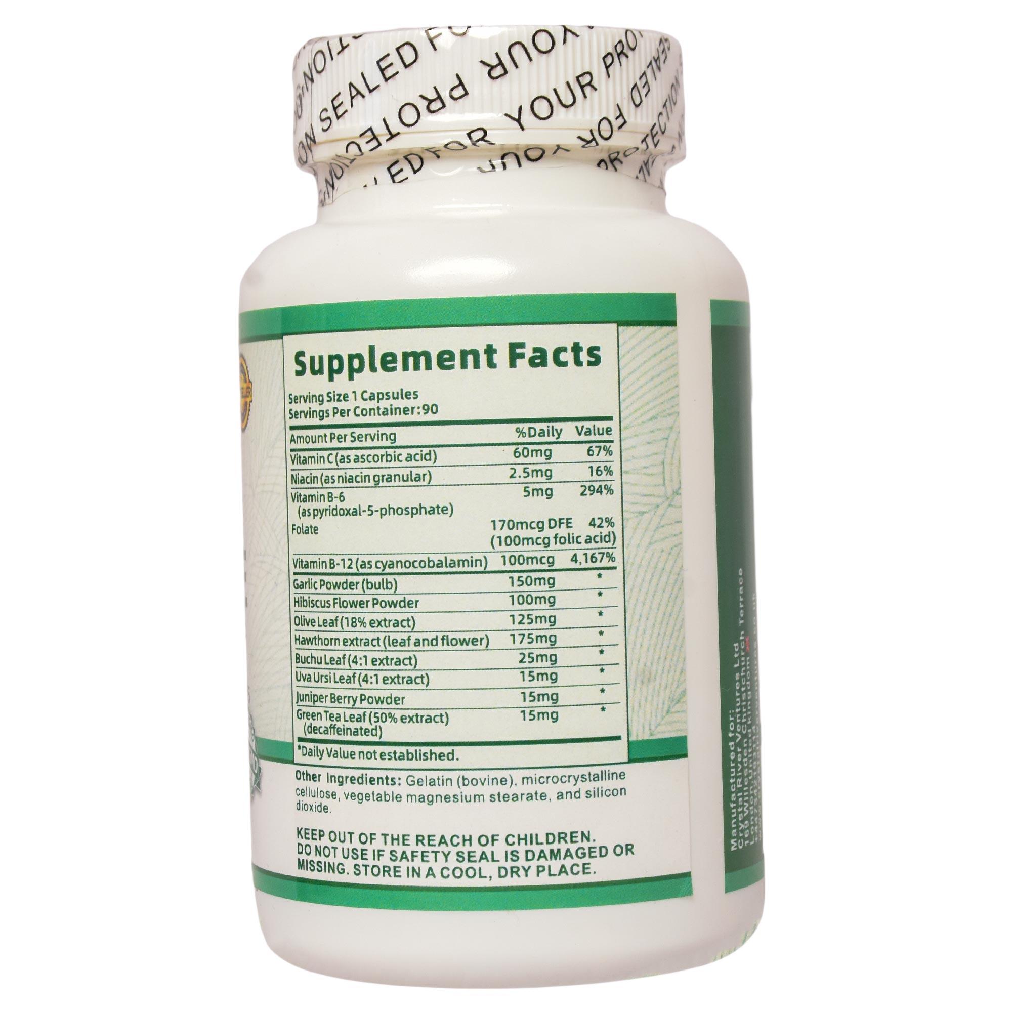 – **Promotes Healthy Blood Pressure**: Hibiscus, Garlic, and